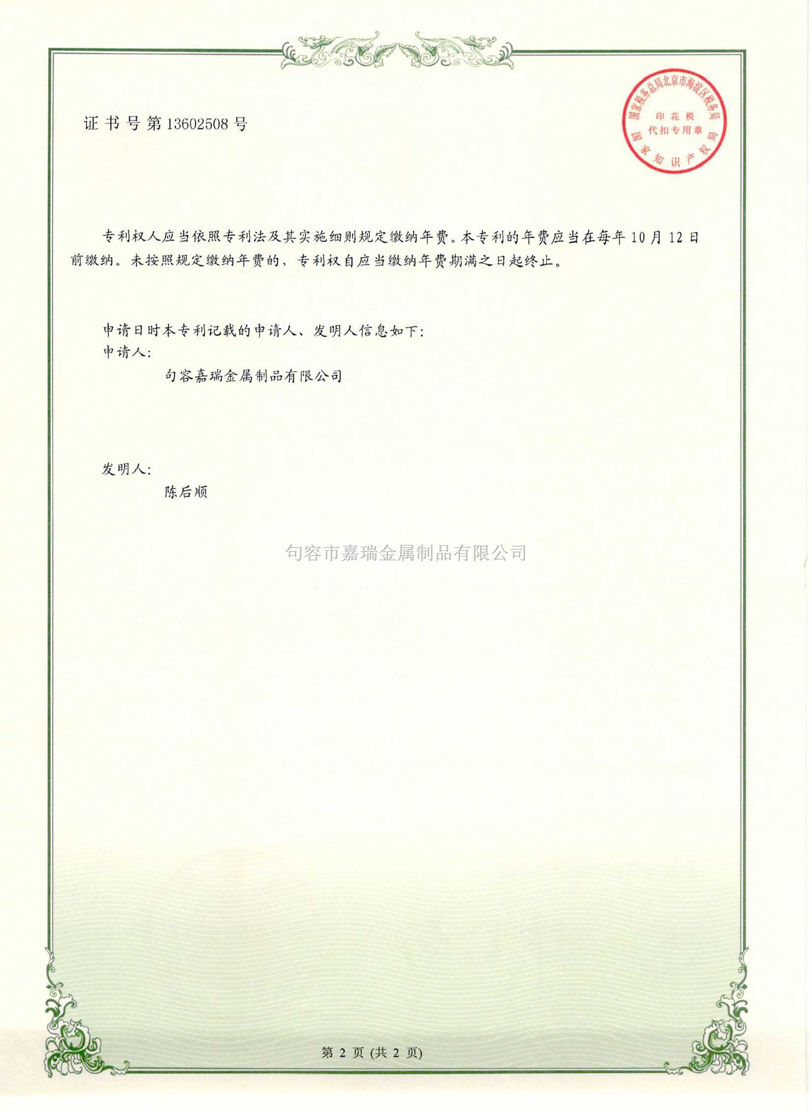 句容嘉瑞金屬制品有限公司 座機電話:0511-87455988-808 郵箱:jiaruimetal@sina.com 地址:句容市天王鎮浦溪工業園浦一路168號